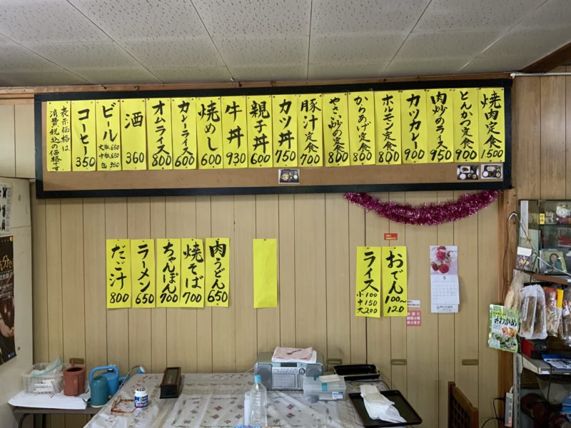 メニューは壁にズラッと貼ってあります。定食から丼もの、麺類までずらっと。