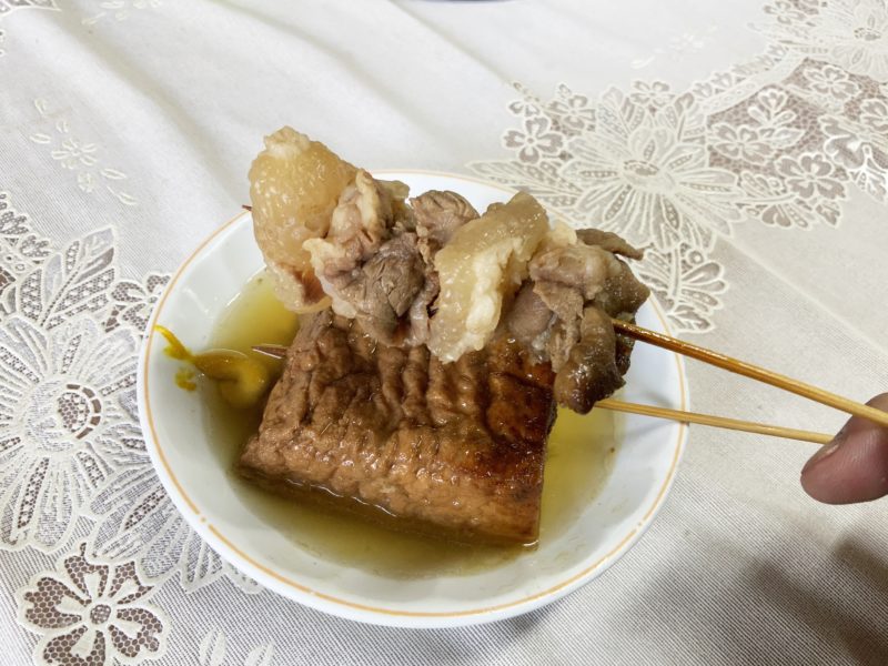 どれもまあ美味しそうなんですけど、この時、特に味がしみていた厚揚げとスジをいただくことに。