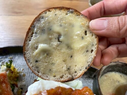 このように、ベーグルと具材を別にして、自分でサンドして食べられるような盛り付けでオーダーすることもできますよ。