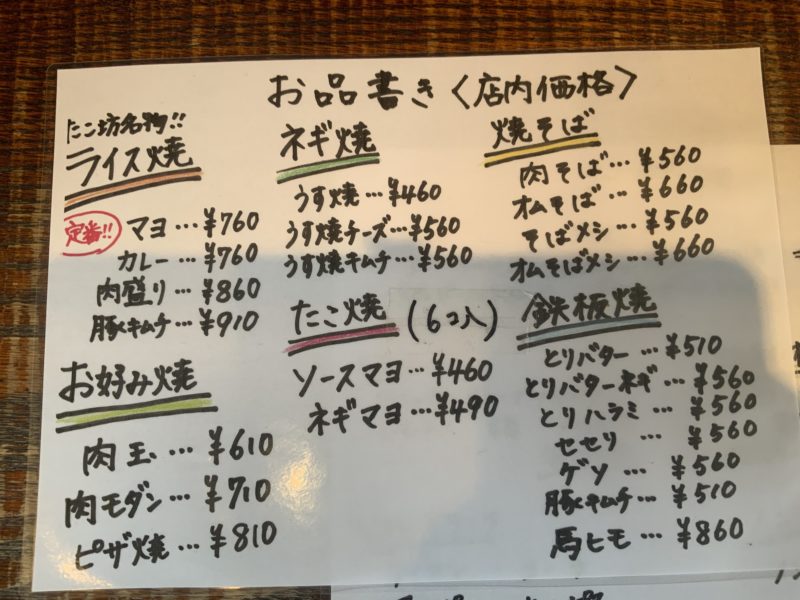 名物「ライス焼」の他にお好み焼き、鉄板焼、たこ焼きなどの焼き物メニューがあります。
