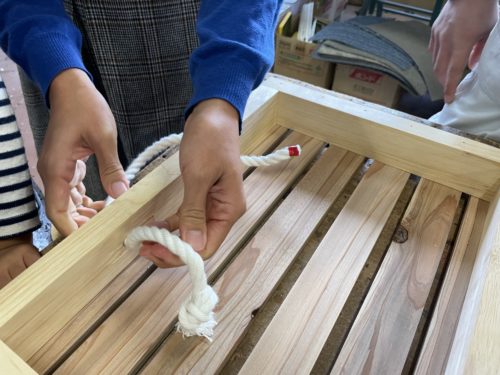 最後はロープを結び、持ち手部分を作ります。