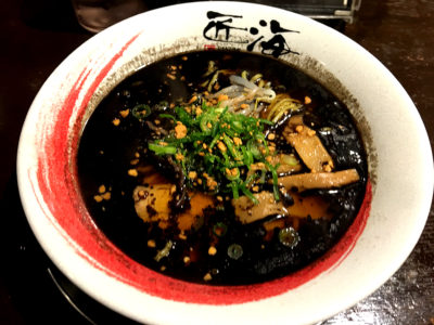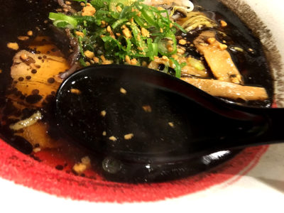 しかもこのラーメン、遠目に見ると真っ黒なんですが、近づいて見るととても透き通っているんです!