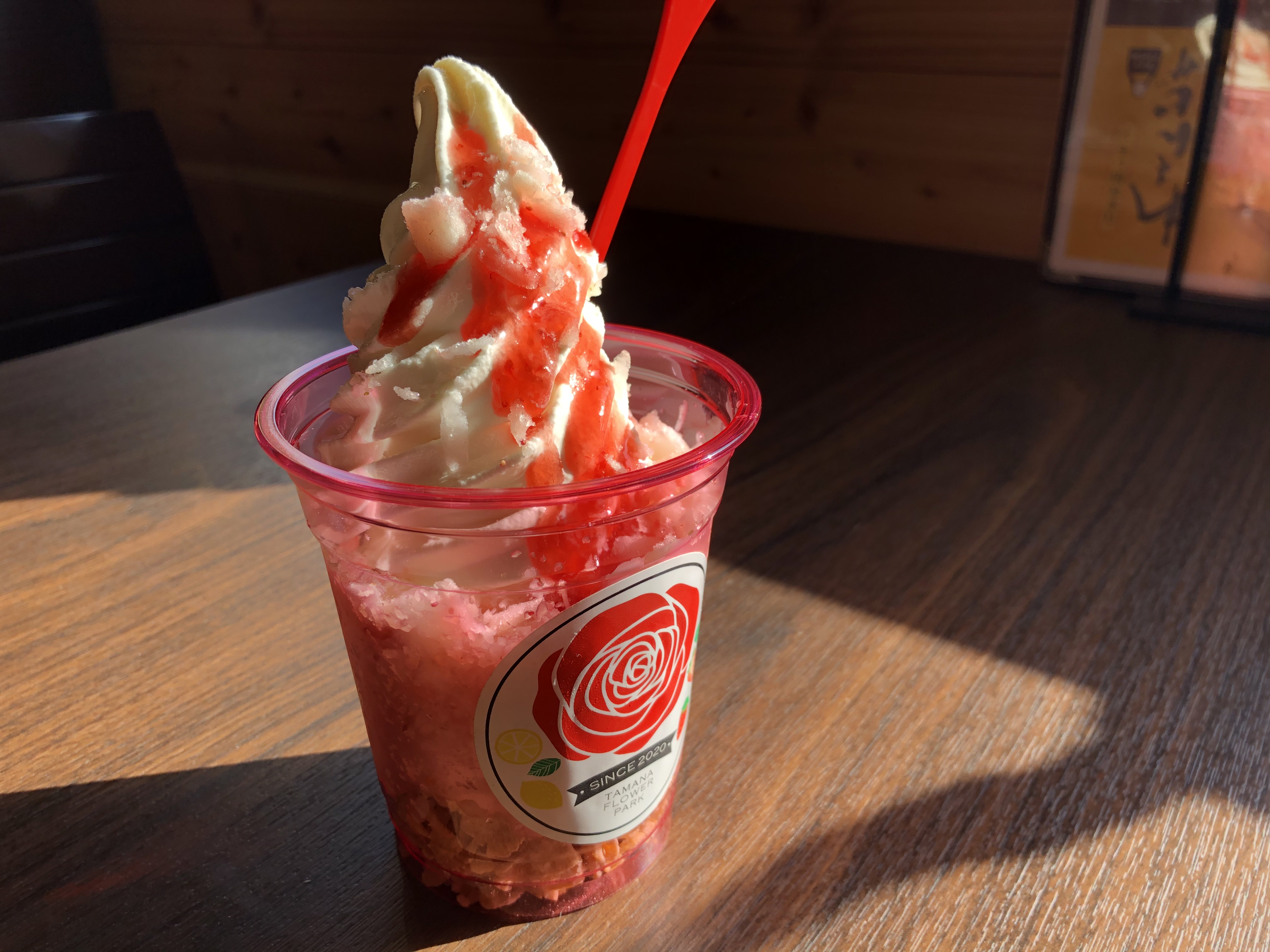 ぶっちゃけ白いちごってむーーーーっちゃ高いです!高級いちごです!この価格で食べるのはまず無理なんじゃないかな…。それを贅沢にいちご氷にし、その上に生乳を使ったソフトクリームをトッピング!