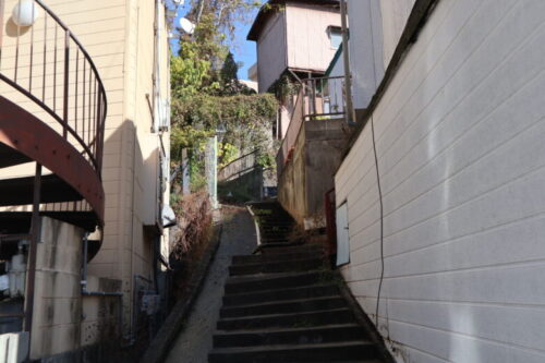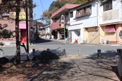 名画通りを一度戻り、さつき別荘方面へ、登り道へと歩きます。温泉宿がたくさんある方面です。ほんの少し坂道が足に疲労を感じます。