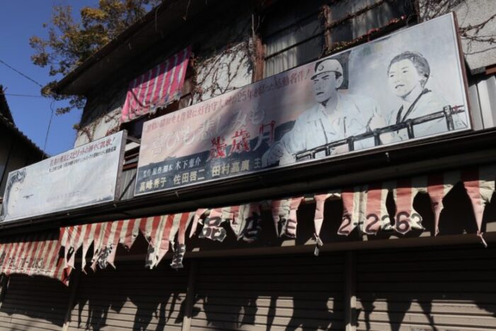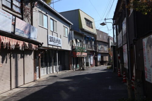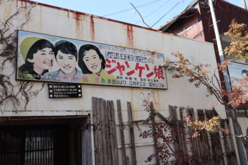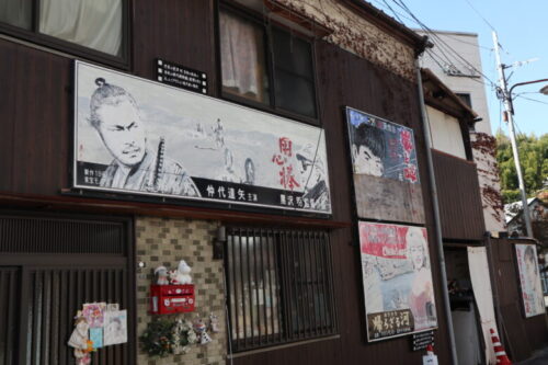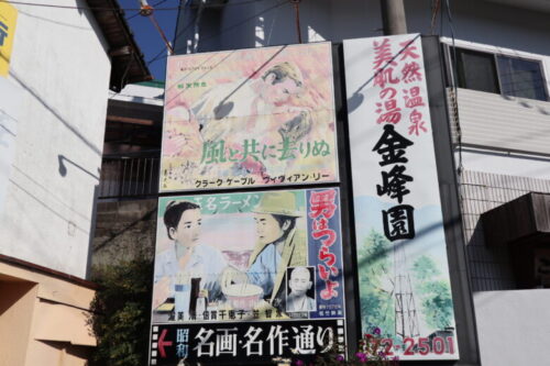 振り返ってもいい感じのカーブと寂れ具合。足湯でぽかぽかになった足でこの通りを後にします。昭和の賑わっていた時代から、令和に戻ってゆきます。スターとはいつまでも忘れられない存在なんだなと改めて思いました。この中でどのくらいの映画を鑑賞済みでしたか?(全部は載せていません)