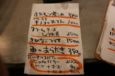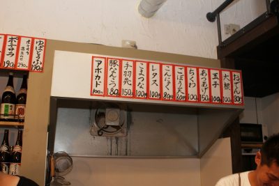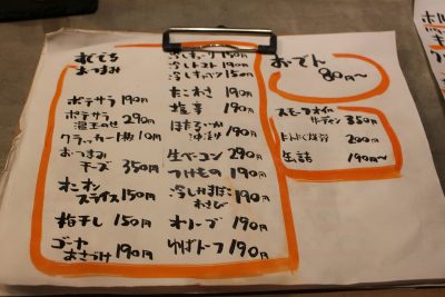 おでんのお品書きは、店内に張り出されています!定番の具材から、ちょっとした変わり種まであるようです。なんやねん、おでんにアボカドって。