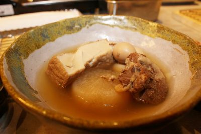 大根はほくほくで、豚なんこつはとろとろで柔らかい。優しい味わいのおでんでした。