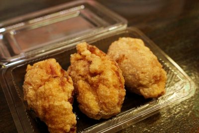 そして、定番の唐揚げは「こってり」を注文。100gで大きめのサイズが3つでした!