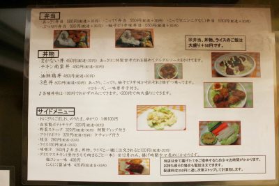 お弁当や丼物などのガッツリ系のご飯はもちろん、サイドメニューにはポテトサラダや野菜スティックなどのあっさり系のメニューもあります!