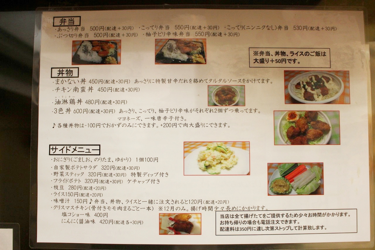 メニューは定番唐揚げからお弁当まで!店内ではお酒も飲める!