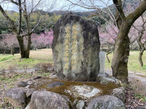 公園の入り口に宮本武蔵座禅石と書かれた石碑を発見!