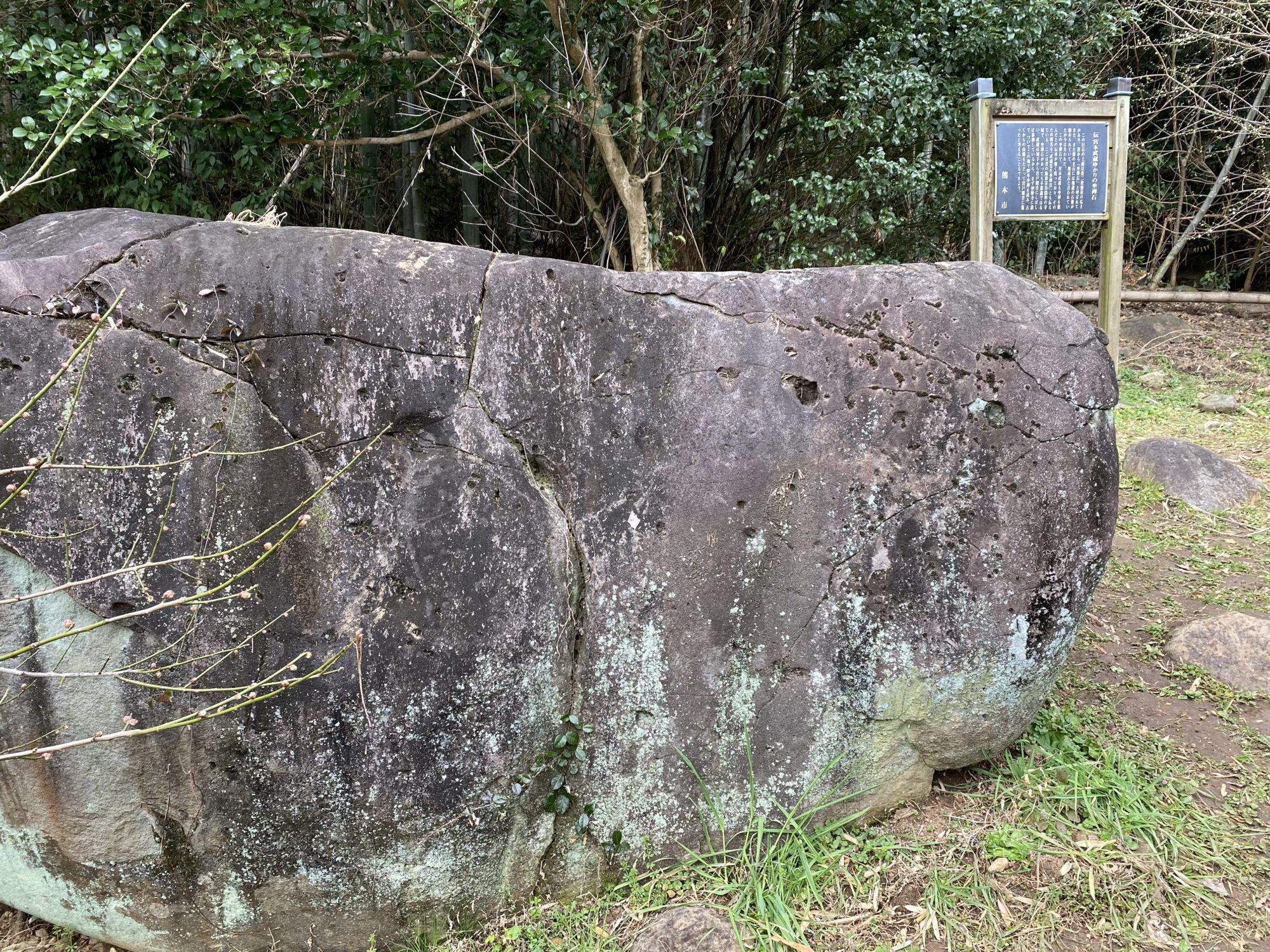 この大きい石が座禅石です。宮本武蔵が座禅を組んだといわれている石です。