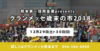今年も本当にあと僅か。そんな平成最後となる年末の12月29日(土)・30日(日)にグランメッセ熊本で、「RKK感謝祭 炭水化物の乱」と「グランメッセ歳末の市2018」の二つの催しが開催予定。