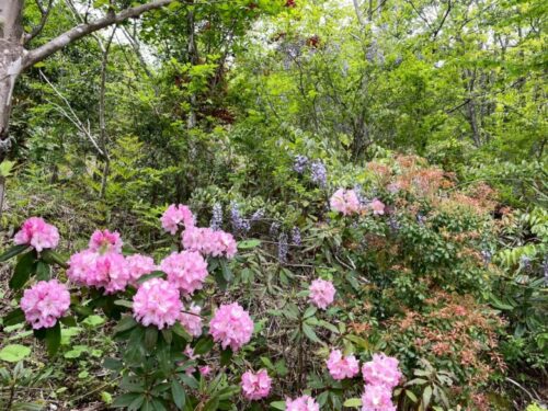 カフェへと向かう道沿いには、ちょうど芍薬や藤の花が咲いていて、可憐なお花に癒されます。
