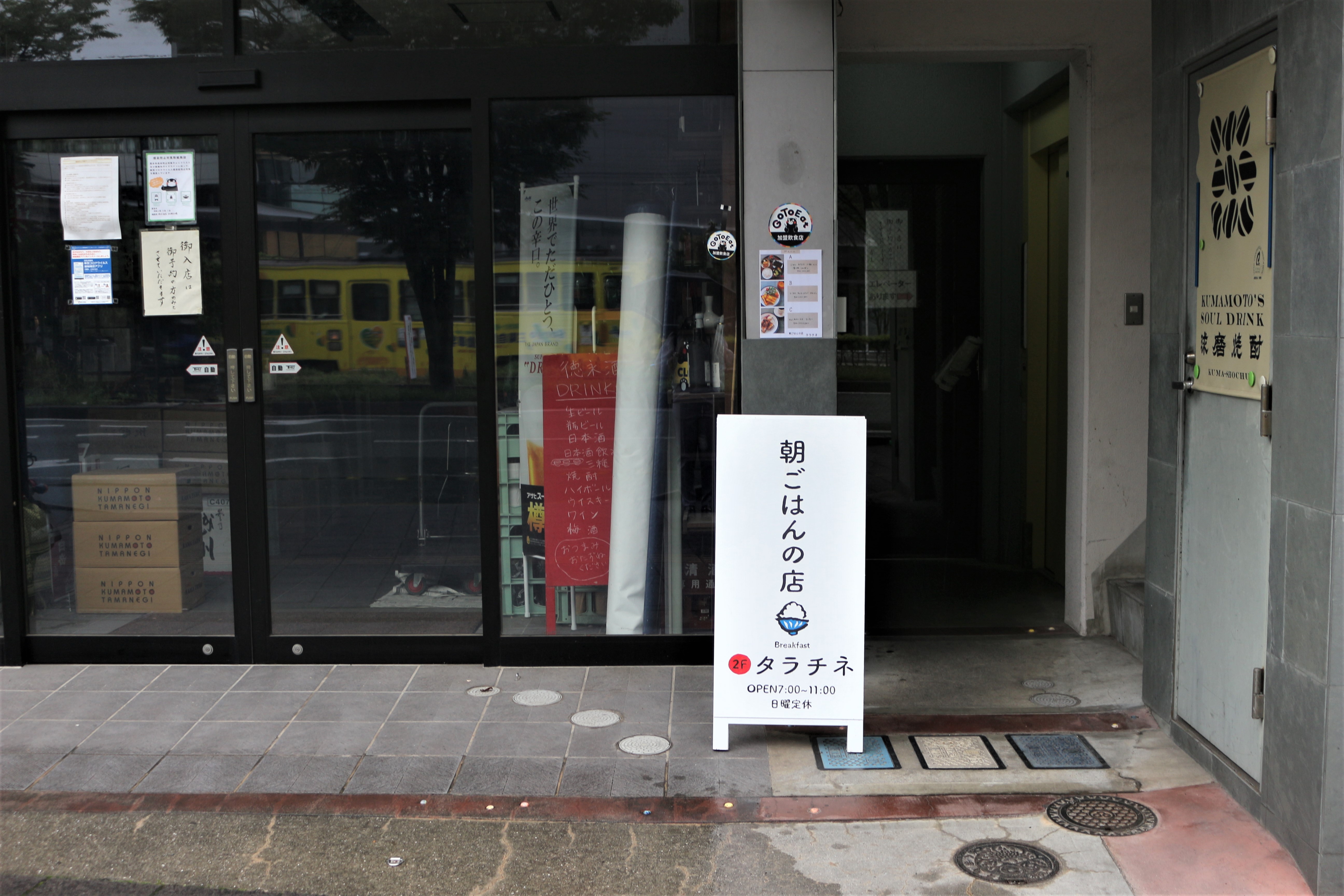 今回ご紹介する朝ごはんの店「タラチネ」はこのアミュプラザ熊本の向かいにひっそりとオープンしていました。