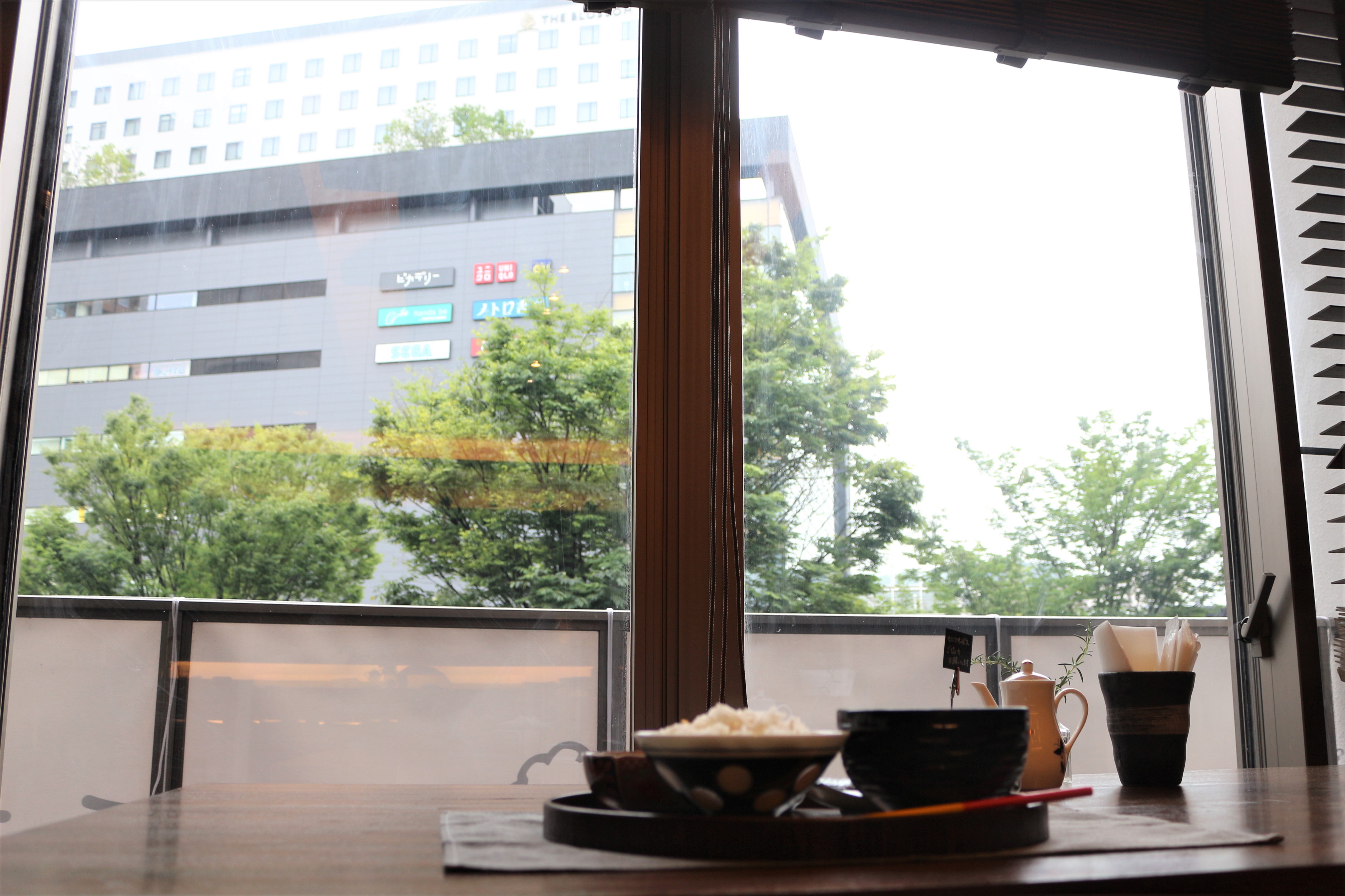 この中でアミュプラザ熊本を眺めながら朝ごはんを食べられます。