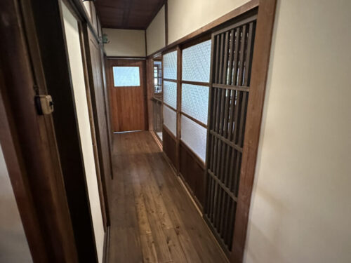 廊下も現代の家に比べ狭く、天井も低い気がします。スイッチもなつかしい。