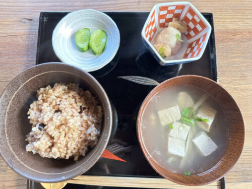 多良木米の雑穀米と味噌汁。