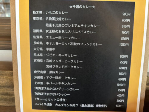 こちらがメニュー。