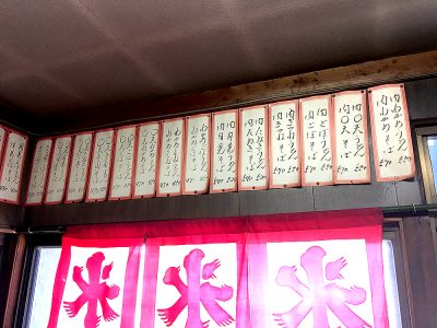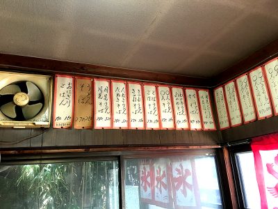 テーブルにメニューはありません。全てのメニューは上に掲げた短冊のみ。結構種類は多いです。