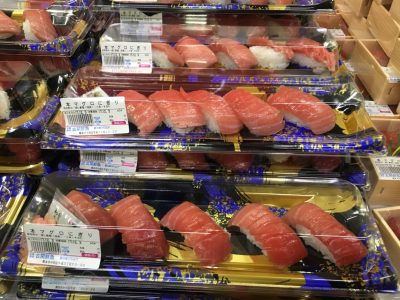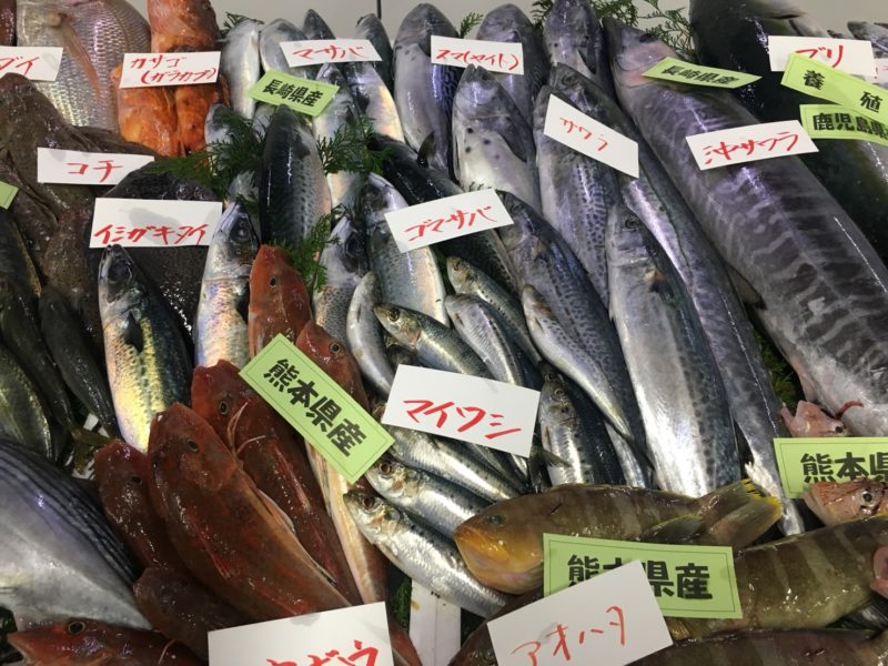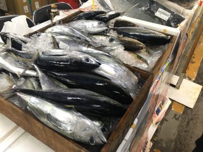 鮮度抜群の魚やお寿司などが並びます。青果や乳製品、冷凍食品や、飲食店の出店も多数ありました。