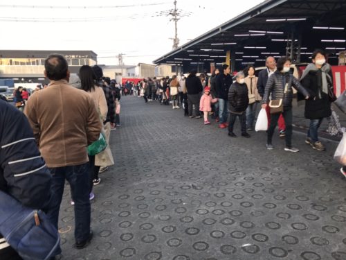 しかし、この日ばかりは、そうも言ってられません。なぜなら、年に一度の田崎市場感謝祭の日だから…!寒い中、いそいそと準備し、マイバッグを持って、気合いを入れて市場に行ってきました!