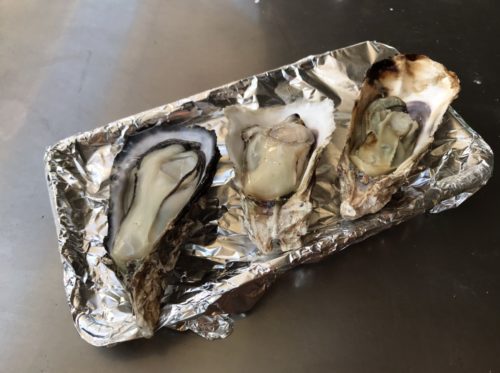 続いて、その場で焼いてもらえる焼き牡蠣3個500円。食べてみると、身が大きくてとろっとジューシーで、たまりません!