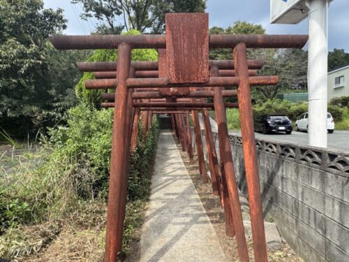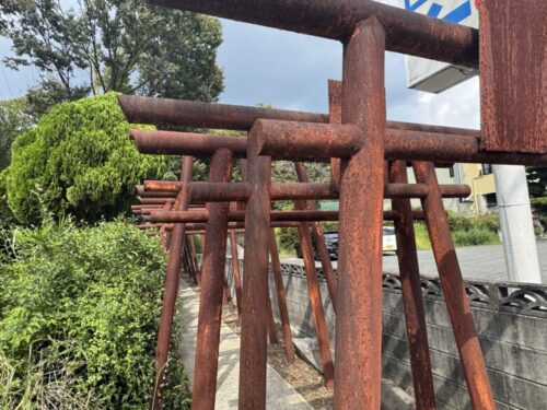 こちらは金属の平たい鳥居がロックな感じで並べてありました。