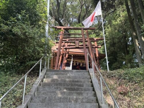 で、これを買って、珈琲をテイクアウトして車の中でぼーっとしていたのですが、「あ!そういえば道の駅の横に謎の鳥居があったな!」と思い出して、ぶらっと行って参りました。