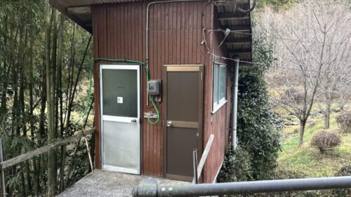 写真じゃわかり辛いですが、崖の中建っているので柱のみで支えられているような状態です。