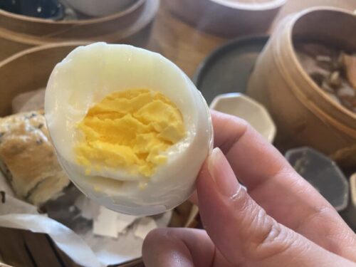 蒸されてぷりぷりになったゆで卵も、丁度いい固さです。