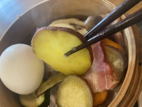 アッツアツの蒸気と共に、ホカホカに蒸された料理が出てきました!