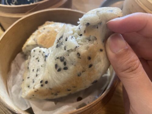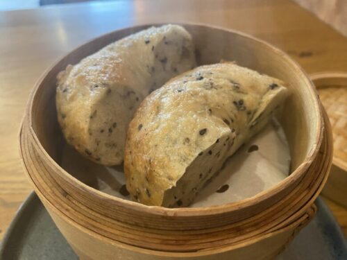 蒸したベーグルを始めて食べたんですが、こんなにふっわふわでもちもちになるんですね…!もはや通常のベーグルとは別の食べ物のようにしっとりふわふわで感動しました。たっぷり入った胡麻も良いアクセントです。