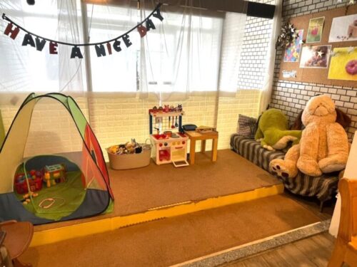 店内奥には、おもちゃもいっぱいあるキッズスペースが設置されていて、子連れママには嬉しいですね!