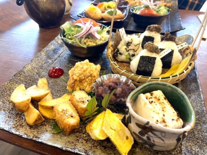 ほかにも、手作りのピーナッツ豆腐や高野豆腐のフライ、きんとんなど美味しいものが勢ぞろいの、にぎやかなプレートです。
