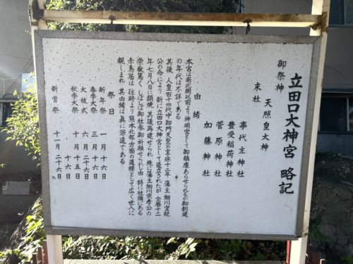 古くは南北朝時代より前からこの地にあって、江戸時代半ば頃には立田口大神宮として整備されたのだそうです。