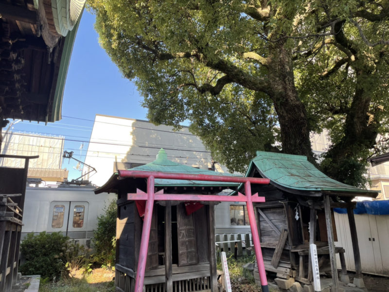 木と線路の近さがすごい。この境内スレスレ感は、歴史ある街ならではという感じです。