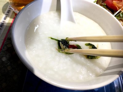 優しいほのかな塩味が効く白粥に、海苔や梅などを混ぜてさらに味わいがUP!この白粥がおかわり自由なだけでも、ここでランチを食べる価値がありますね。