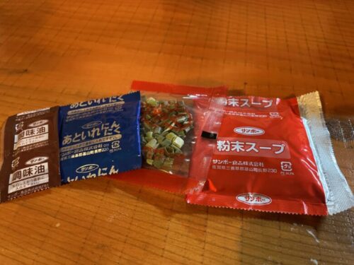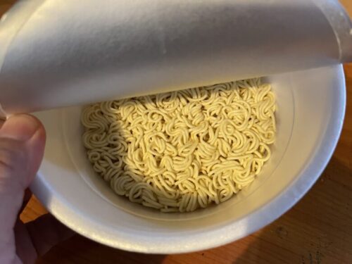 容器に書いてある通りに作ります。(個人的には麺は柔いのがいいので5分置くのですが)