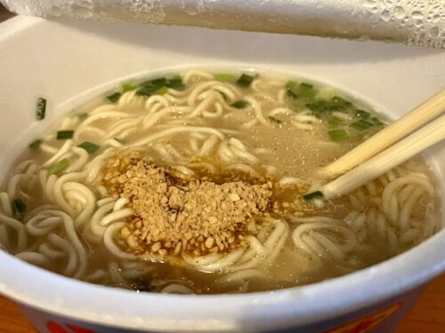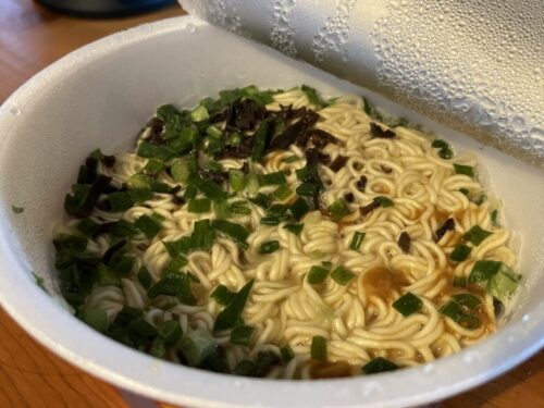 しかし、カップラーメンとなったら店の味再現度は生麺タイプより落ちるはず、とりあえず食うてレビューします。