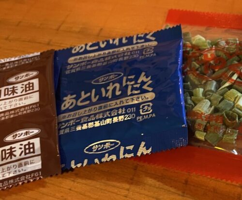 まずは、あといれにんにくを入れずに食す。2、3口食べたところで、あといれにんにくを入れる。この食べ方がオススメです。