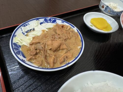 ホルモンはふわっと柔らかく味は濃い目です。お肉の風味もしっかりと残し、けれどもみそ煮の味もがっつりと染み込んでおります。甘みはなく、濃い味を楽しむ為の白ご飯がまた美味しい!炭水化物に溺れるランチタイム。幸せ….。