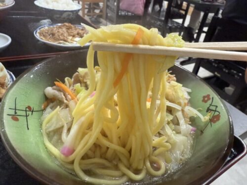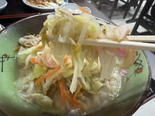 太い噛み応えのあるもちもち麺に透明のスープ。お野菜もたっぷりで、かなり満腹になります。甘さのない、塩気の利いたスープでこれもまたご飯がすすみます。ラーメンとちゃんぽん、かなり迷いますよ!!