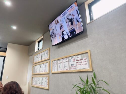 奥のテレビの下にメニュー表があります。