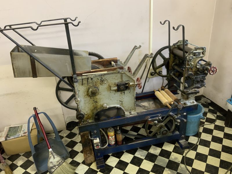 この機械で毎日、店内製造。なんでも先代が製粉会社で研究員をしていたそうで、麺にもかなりこだわったそうで、当代の店主もそれを引き継ぎ変わらぬ味を守り続けています。