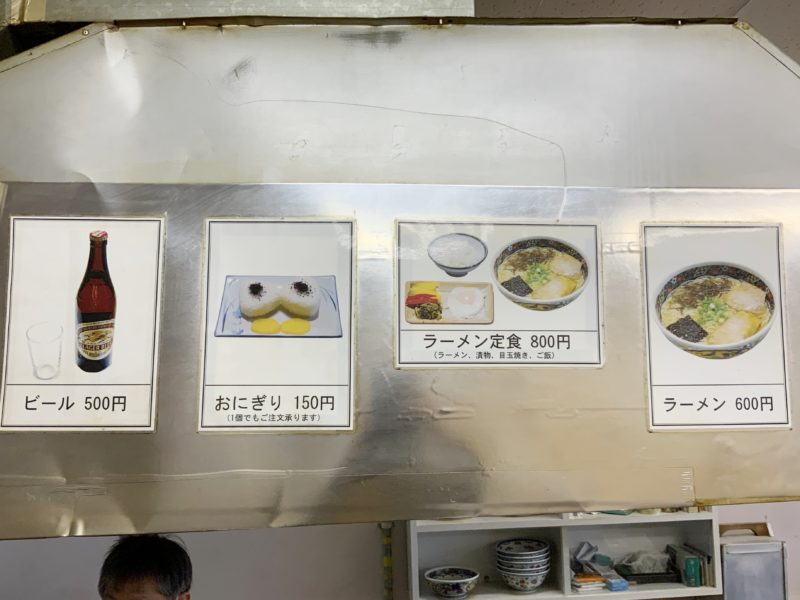 メニューは「ラーメン」「ラーメン定食」「おにぎり」「ビール」のみ。