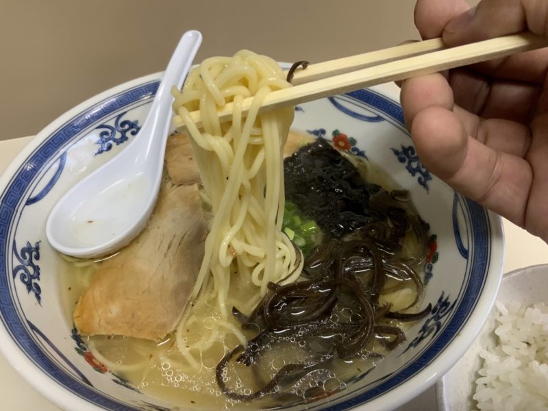スープは豚骨ですが、とても澄んでいて、味は濃厚なのに癖は少なくすーっと入っていきます。ご飯とも相性がよくてラーメンのスープだけでご飯3合くらい食べられそうです。
