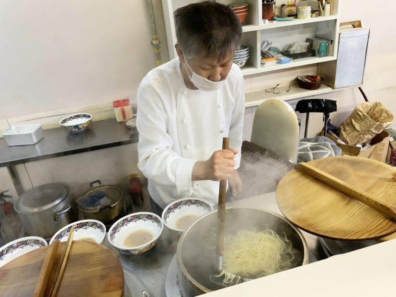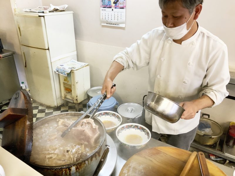 こまめにアクをとりながら、常に美味しい状態のスープを出されています。