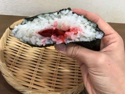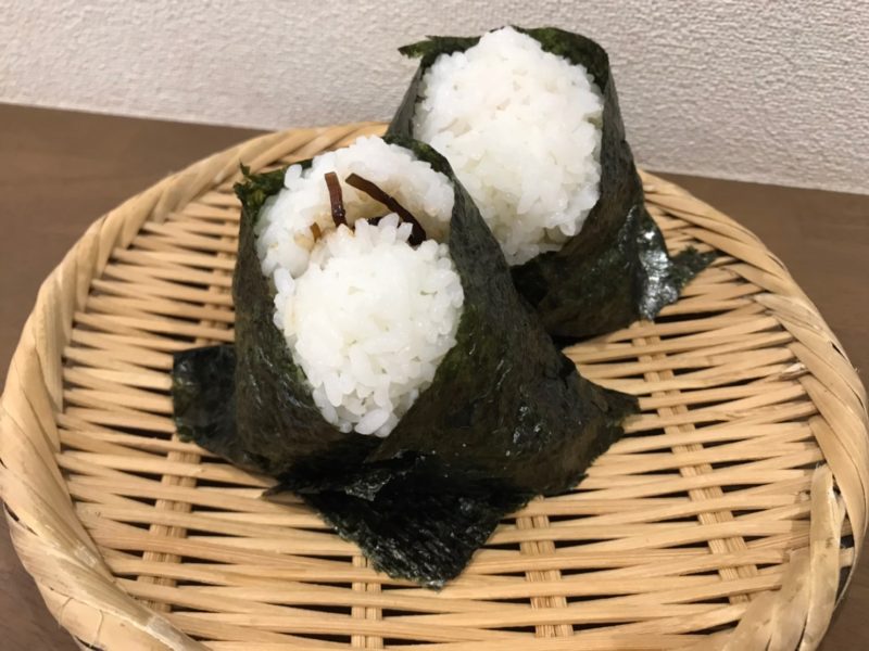 沖縄の塩でにぎったおにぎりを、有明産の特上ランクの焼きのりで丁寧に包んで、完成!