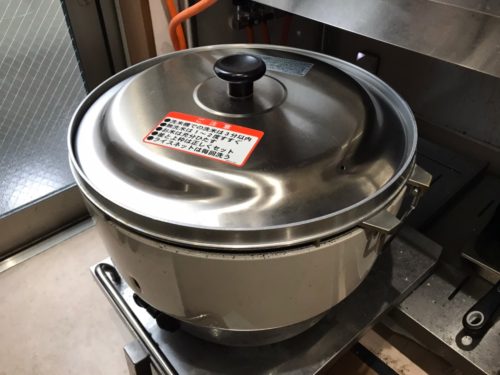 玉東の農家さんが湧き水を利用して作られているお米を、こちらの四升炊きの大きなガス釜で炊かれています。田んぼの土づくりには、れんげや菜たねカスの一番搾りなどの有機物を使用されているそうで、とってもおいしいお米です。